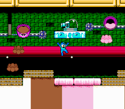 Gimmicks are a type of obstacle used to enhance a level and provide a challenge in a way enemies often can't. Unlike enemies, gimmicks come in all sorts of varieties; some are little more than fancy types of platform, others can radically affect progression through a level. In the Mega Man franchise, gimmicks are often (though not always) themed around the stage's aesthetic and that of the Robot Master; for instance, Nitro Man's stage features Nitro Trucks that try to ram into Mega Man, but can be jumped on and used as fast-travel through a long stretch of a level (and shooting a traffic light stops them from appearing).