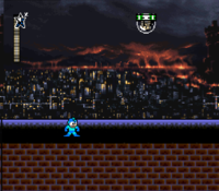 Well the concept for this is certainly... interesting. However, it's one of those concepts which encourages the player to get rid of it altogether during their playthrough. Doing a buster only run of this stage can easily get very tedious, as the player has to wait often complete cycles of the background in order to not put themselves at rist of falling off. Coupled with the added enemies later in the stage, using Hornet Chaser to just get rid of the entire driving point of the level is a much safer option which also will make the level more fun to play. The boss fight is not much better, unfortunately, with the background and Apache Joes distracting from the actual fight and the projectiles blending in with the slowly moving background. I didn't have a lot of fun with this level and I think that while its concept is creative, it needs a lot of adjustments in order to be even remotely usable in a fun environment.