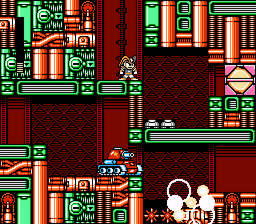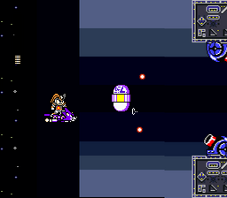 This level functions more as a side-scrolling shoot-'em-up (akin to Gradius or Mega Man 8's Rush Jet sections) than a typical platforming level. Like the Stone Butterfly boss fight from the previous game, only a small red dot on Mega Man's chest takes damage, and like the MM8 Rush Jet sections, there are power-up capsules that can summon Auto, Eddie and Beat to assist, or allow Rush to fire bullets. Great Core appears at the end as a sub-boss.