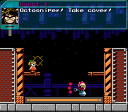 This level is an homage to Splatoon, with enemies reskinned to look like Octarians, and Callie & Marie offering Mission Control commentary. Three Octosnipers appear throughout the stage as sub-bosses.